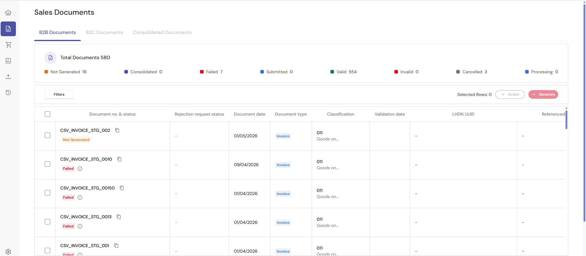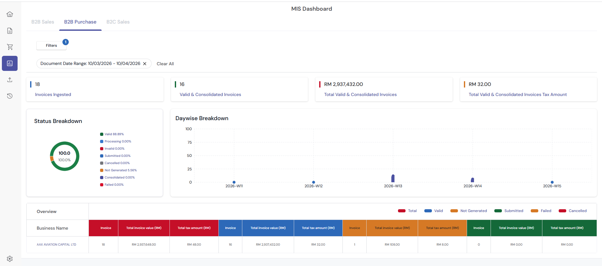 Organizations required an enterprise e-invoicing middleware capable of handling high-volume invoicing across multiple source systems with different schemas and data quality levels. Invoice data originated from diverse platforms, increasing reconciliation effort and the risk of non-compliant submissions. Regulatory compliance demanded strict enforcement of mandatory fields, formats, and cross-field consistency. Operations teams lacked transparency into invoice lifecycle and failure points. The solution also needed multi-entity support with tenant-level isolation, granular access control, complete auditability, and strict environment segregation.